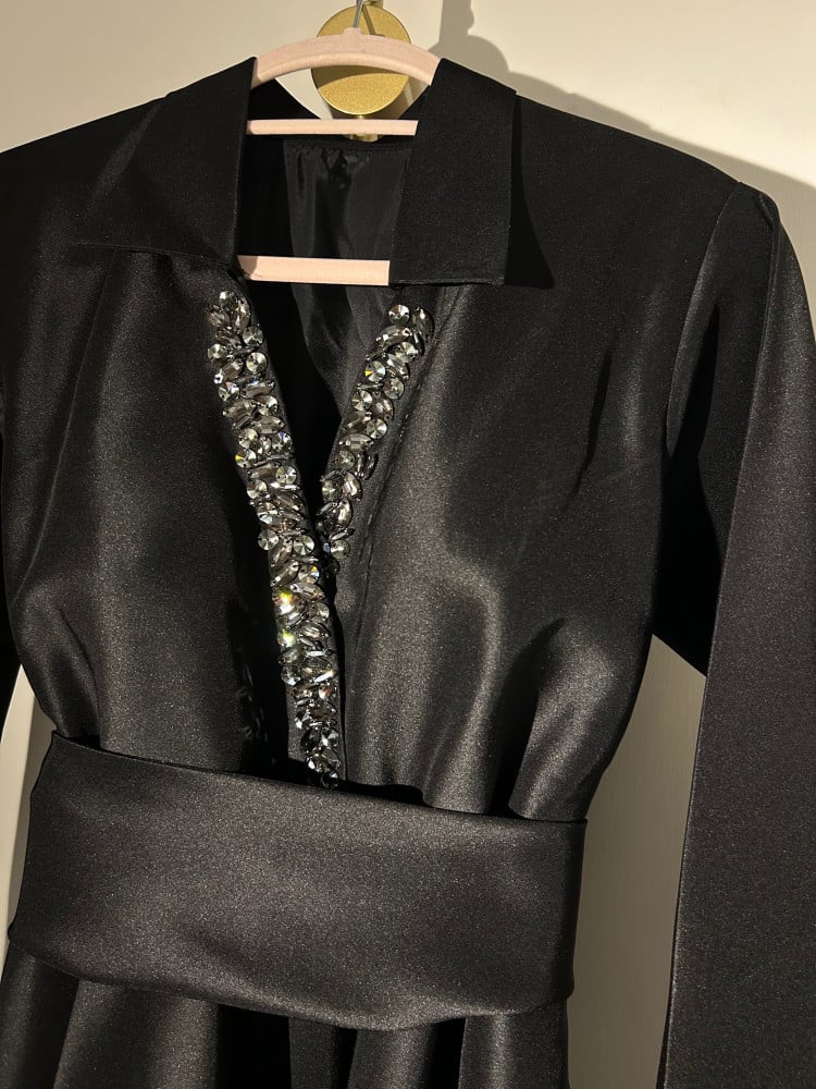 Equipped with a pocket at the end of the dress and an inner pocket